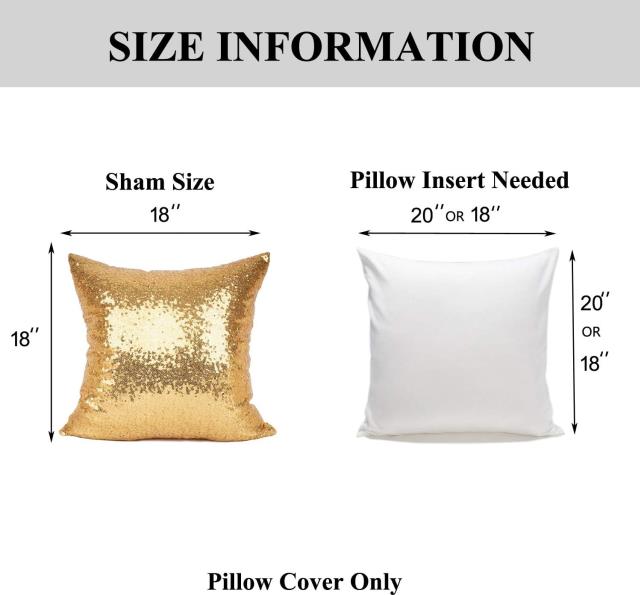 COVER, PILLOW, 18", GOLD, SEQUIN