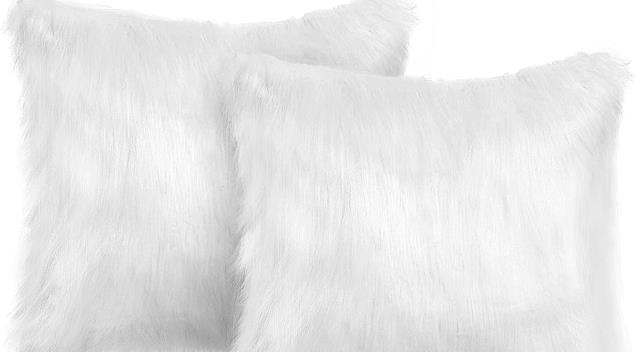 COVER, PILLOW, 18", WHITE FAUX FUR