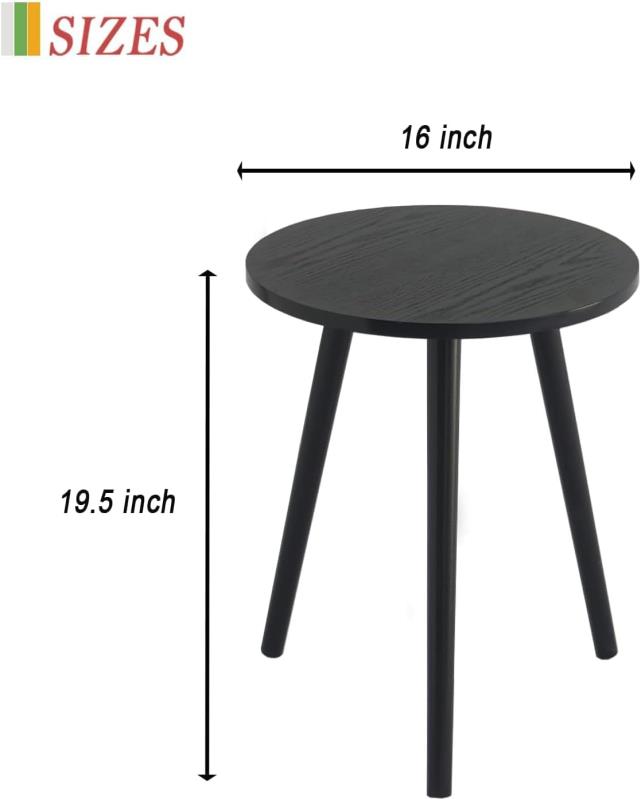 TABLE, SIDE, BLACK ROUND 16.5"H x 16"D