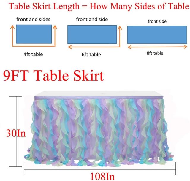 TABLE SKIRT, 9', RAINBOW, UNICORN CURLY